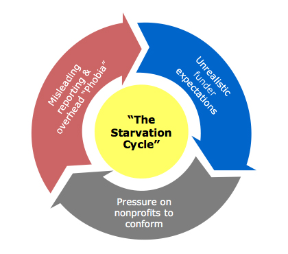 一般人常認為後勤行政成本與直接服務無關,是浪費而不是投資,但組織行政能量(infrastructure)的投資不足卻可能造成公益組織「飢餓循環」的自我實現。