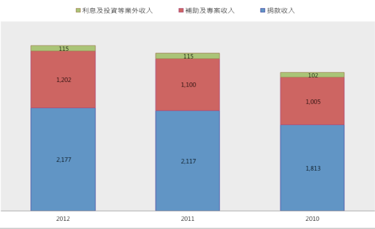 [公益組織收入持續成長](單位:NT$百萬元)