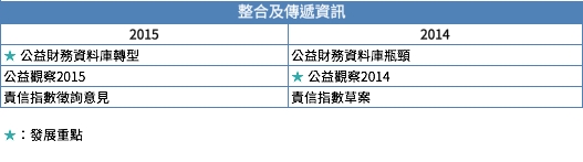 責信指數草案將主動徵詢專家及實務界意見,並擴大試做規模,相關研究將發表於公益觀察2015。